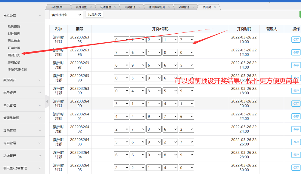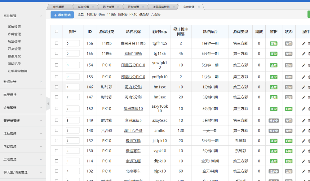 系统开奖和控制优化,可以自由添加彩种,已经添加多种彩,包含澳洲5,澳洲10等等源码你们还可以进行二开