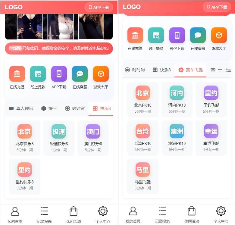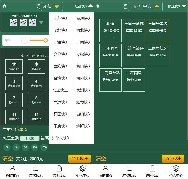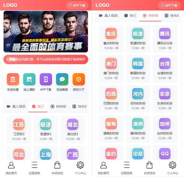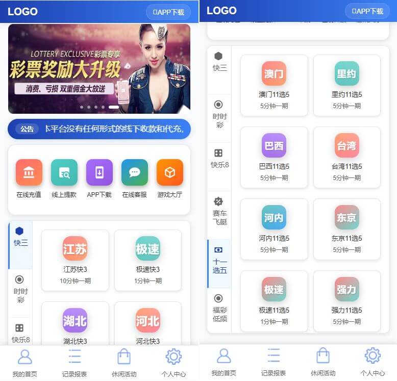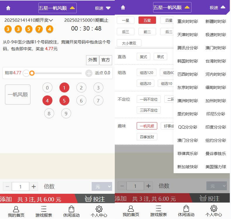 三主题模板可供选择,后台可控,彩种比较丰富,多数都是系统彩不用担心采集接口失效问题。