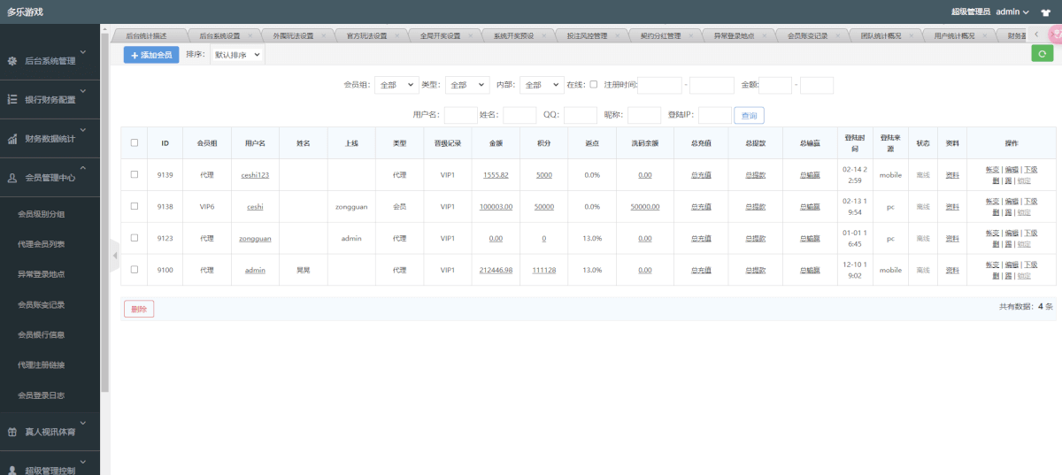 4.前台测试账号:ceshi123密码:123456