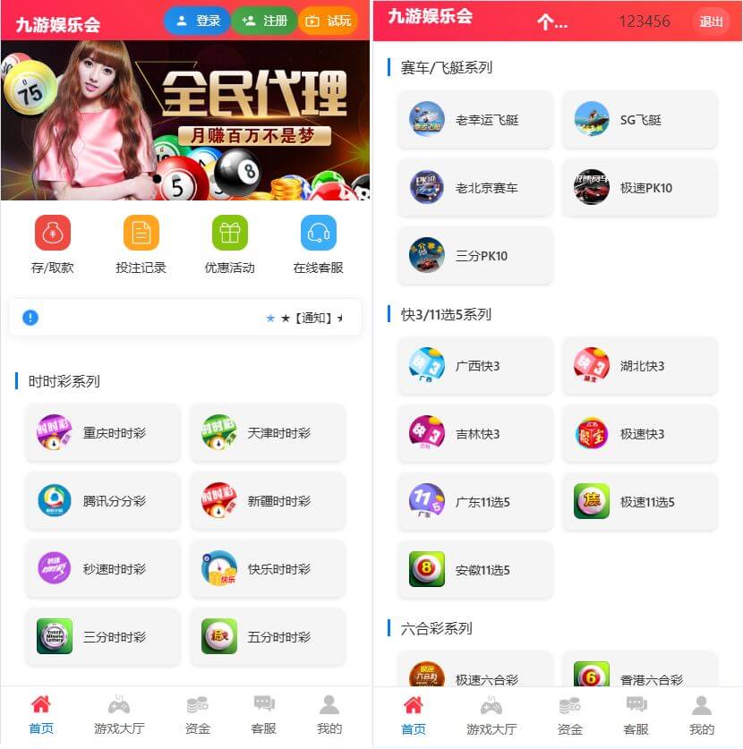九游会信用盘源码多种游戏彩种采集修复本地可控可二开对接任意真人接口!