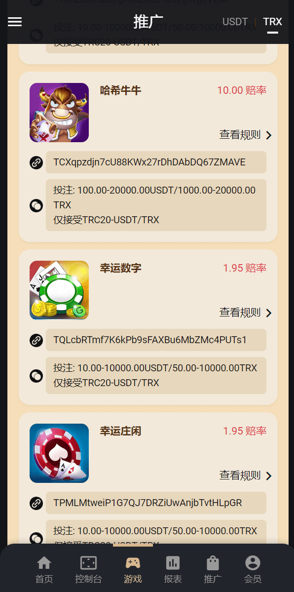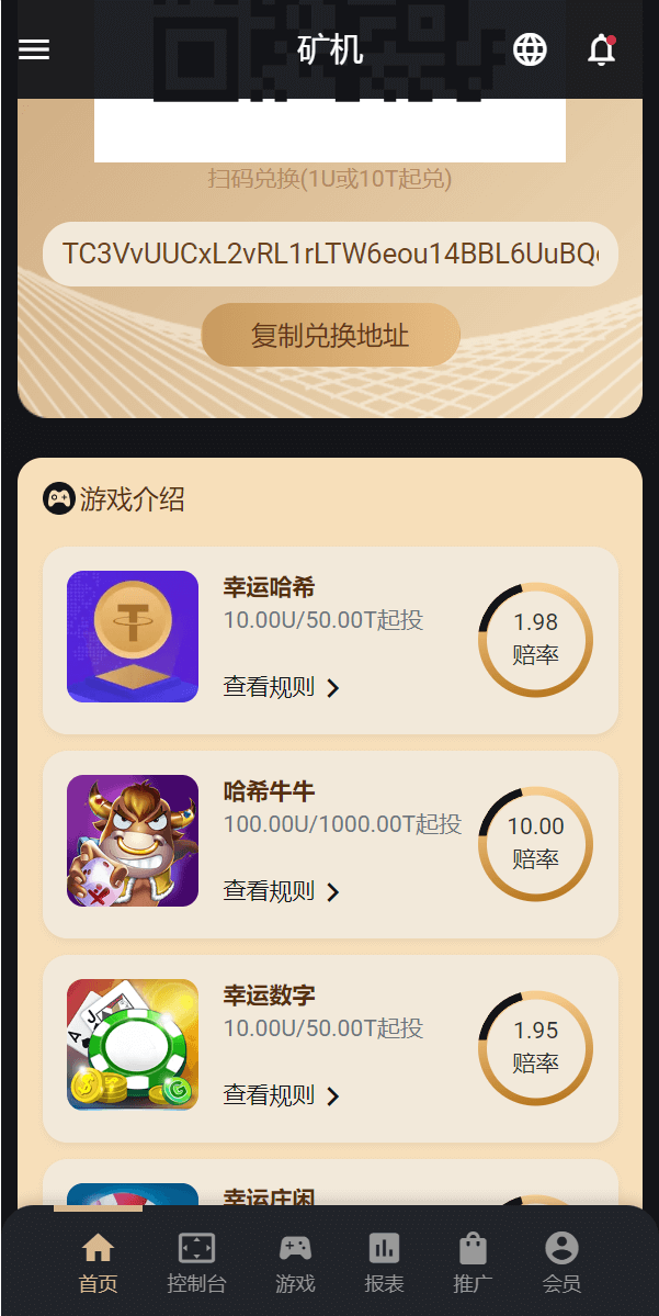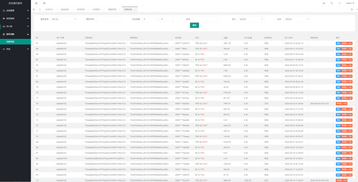 支持TRX兑换USDT功能,支持中奖审核打款