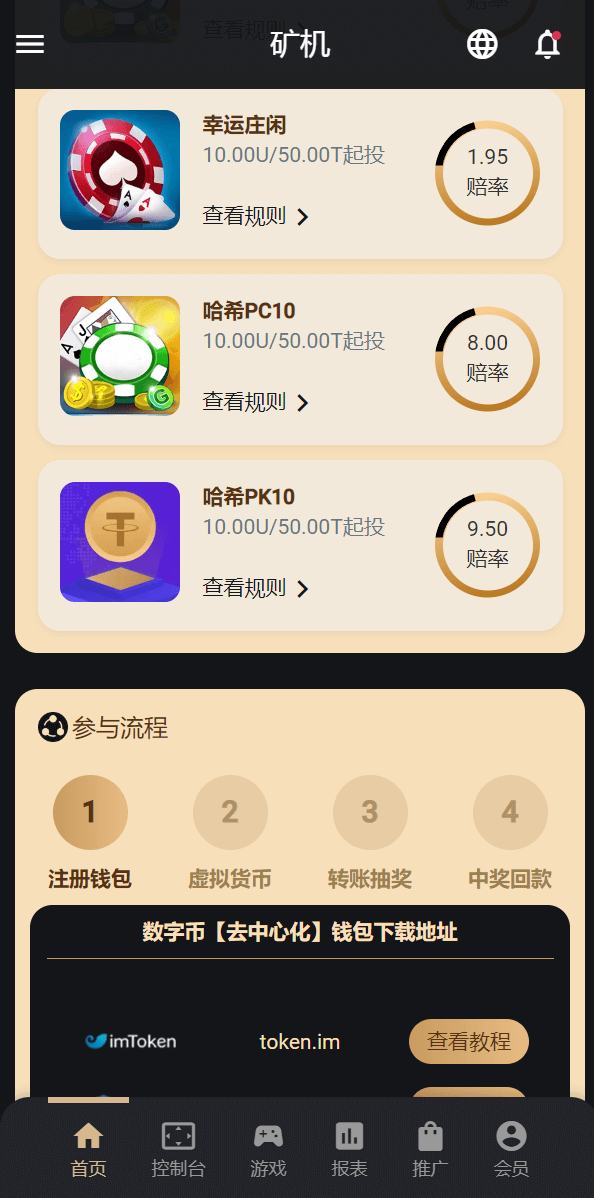 游戏有:幸运哈希、哈希牛牛、幸运数字、幸运庄闲、哈希PC10、哈希PK10